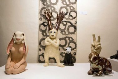 In Anlehnung an Joseph Beuys‘ Aktionen mit Hasen widmet sich die Abteilung Kunst der KunstModeDesign Herbststrasse der künstlerischen Auseinandersetzung mit vielfältigen Mitteln. In dieser Schau werden Arbeiten von Schüler/innen aus Kleinprojekten aller Kunstabteilungen der Schule im festlichen Rahmen gezeigt. Seien es transparente Abgüsse natürlicher Holzstrukturen aus Latex oder eine Gruppe vermenschlichter Hasenfiguren aus Keramik. Seien es textile Neudeutungen der Küchenschürze oder ein Holzregal in der Form eines laufenden Hasen. Die hier ausgestellten Werke sind Ergebnisse einer konzentrierten fünfjährigen Ausbildung in den Bereichen Holz, Keramik und Metall beziehungsweise textile Oberflächentechniken, Web- und Knüpftechniken sowie Drucken, ergänzt durch die Bereiche Fotografie und medialen Darstellungsverfahren. Die Besucher/innen erwartet ein Einblick in handwerklich ausgefeilte Umsetzungen welche den hohen Designanspruch der Ausbildung widerspiegeln.