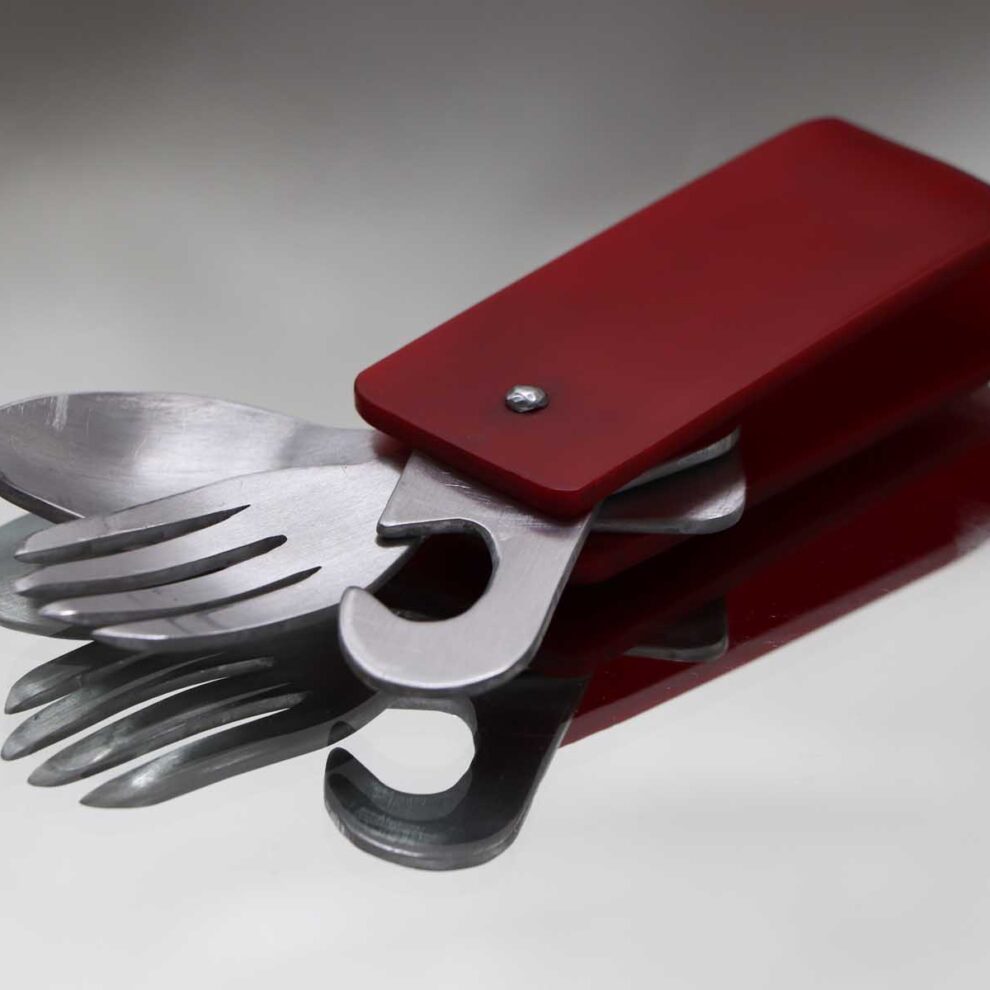 „Unser Ziel war es, dass das Besteck multifunktional sowie platzsparend ist und kompakt verpackt werden kann. Im Fokus hatten wir Schüler:innen und Studierende als Zielgruppe. Aber auch Outdoor Sportler:innen sollen von unserem nachhaltigen Besteck profitieren“, so die Künstlerinnen.