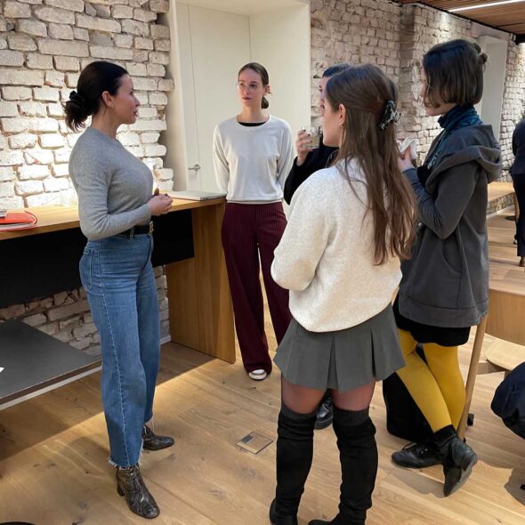 Die Modebranche sieht sich in einem fundamentalen Wandel und steht vor zahlreichen Herausforderungen. Diese erfordern neue Jobs und entsprechend komplexe Job Descriptions in der Branche. Das war der erste Eindruck, den die jungen Erwachsenen bei der Vorstellung von Berufsbildern erhielten. Sehr spannende, konkrete Einblicke in den Arbeitsalltag schilderte etwa Lena, Absolventin des Modekollegs der KMD Herbststrasse und jetzt Sales Representatives bei BESTSELLER. Sie sprach u.a. über erfolgreiche Verkaufsverhandlungen, Analysetätigkeiten, über die Reisetätigkeiten und den internationalen Austausch. Ein Rundgang in der repräsentativen Residenz von BESTSELLER in die einzelnen Showrooms, weitere Gespräche mit Mitarbeiter:innen, etwa zu Kollektionen, Mindestabsatzmengen, etc., erweiterten das Verständnis. Christina Svoboda, Marketinglehrerin an der KMD, fasste es kurz zusammen: „Wir nehmen mit: Herausforderungen des Joballtags waren spürbar, notwendige Zahlenaffinität erkennbar, Gestaltungsmöglichkeiten sichtbar, Talententfaltung lebbar!“