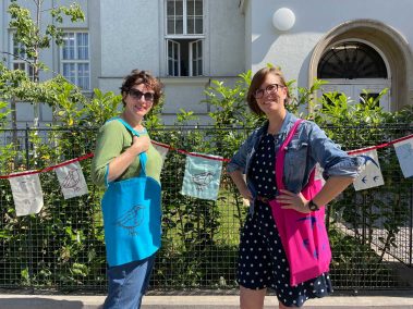 Mauersegler-Fest am Samstag, den 26. Juni 2021 im Karl Farkas Park in Wien Neubau. Kunstschüler*innen kooperieren mit dem 07. Bezirk und bedrucken am Mauersegler-Fest T-Shirts, Taschen oder sonstige Textilien.