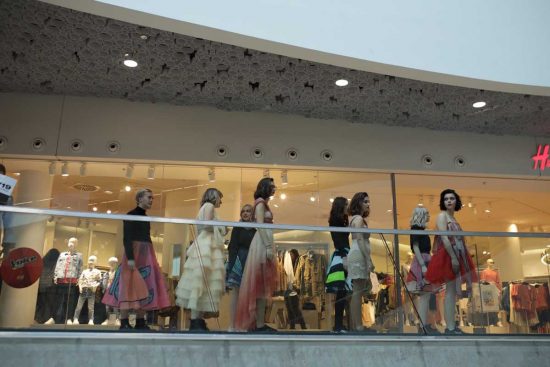 Schüler/innen der Modeklasse A des 2. Jahrgangs der Herbststrasse überraschten Besucher/innen des Einkaufszentrums „THE MALL“ mit einem Flashmob. Angekündigt wurde die SHOW19 am 11/12 April 2019. Eine gelungene Guerilla Marketing Aktion der Youngsters der Kreativschule. Gratulation!