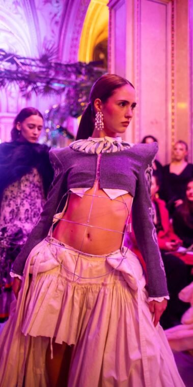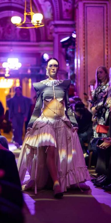 Fashion meets Opera brachte Nachwuchsdesigner:innen der KunstModeDesign Herbststrasse auf eine der traditionsreichsten Bühnen der Stadt. Die Veranstaltung verband Fashionshow, Musik und Clubkultur und verwandelte die Staatsoper für eine Nacht in einen Ort zeitgenössischer Mode.