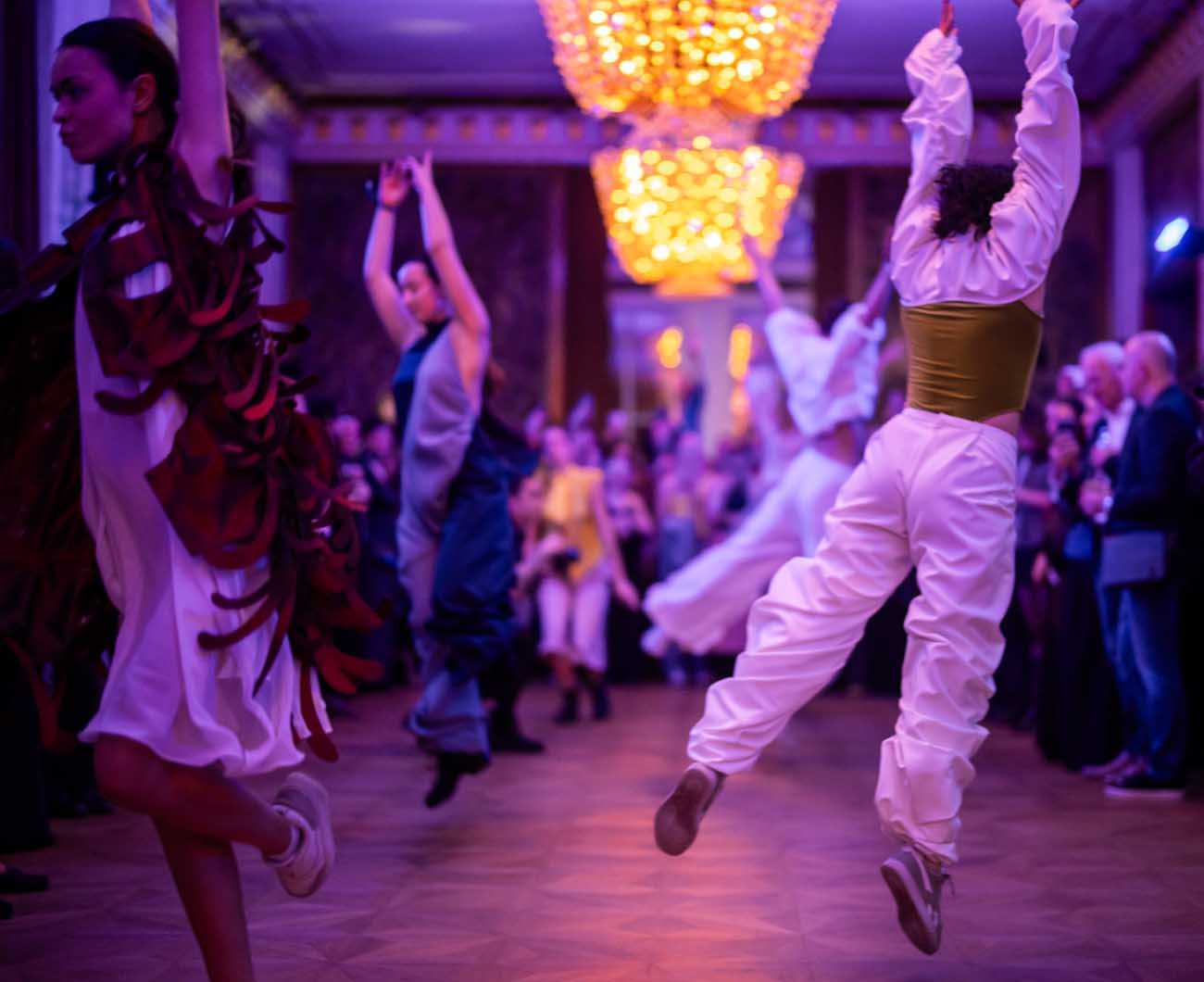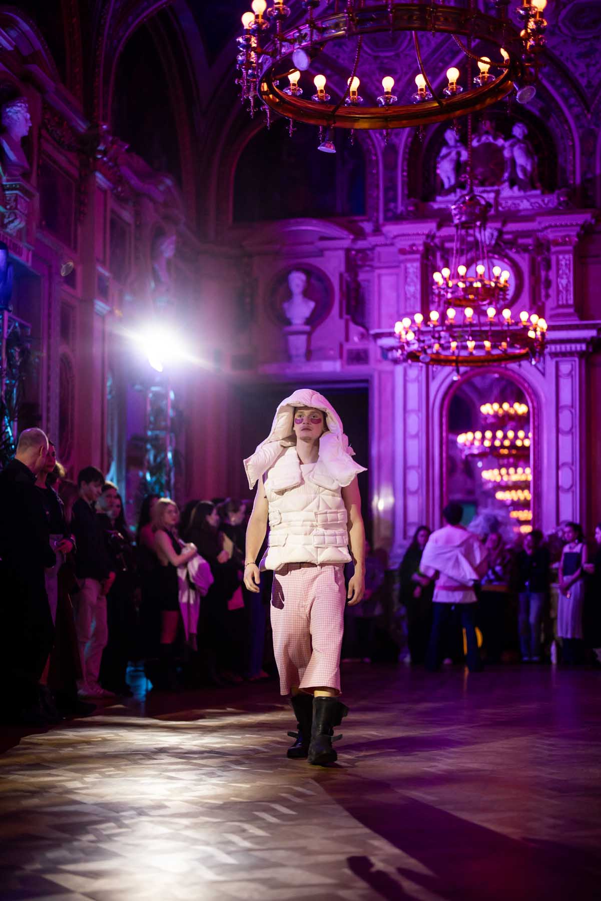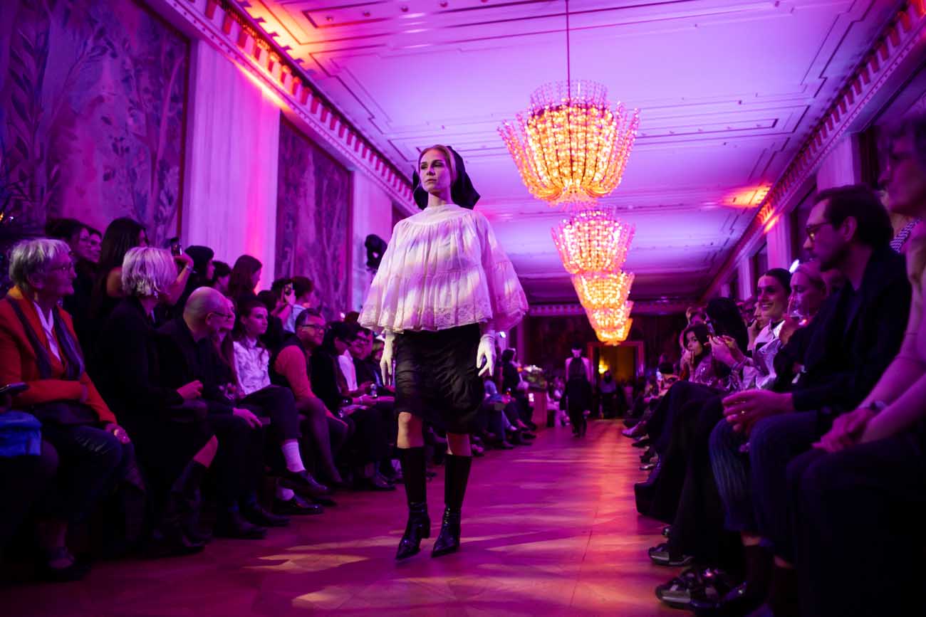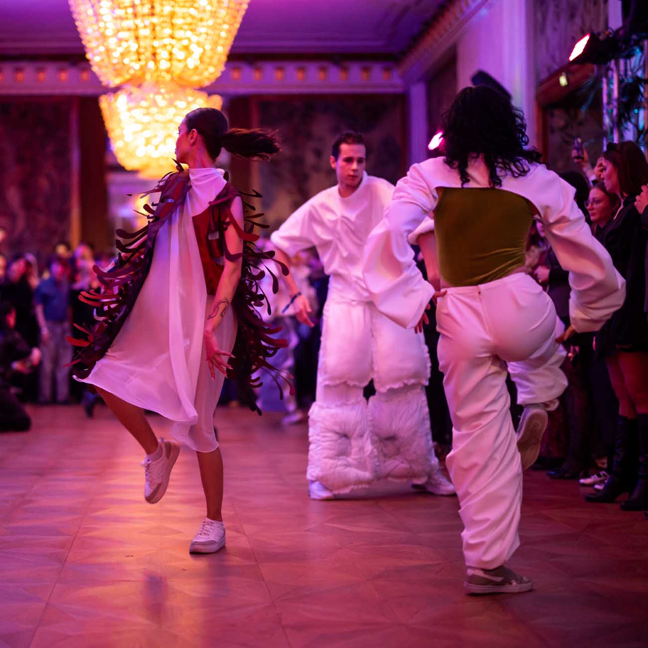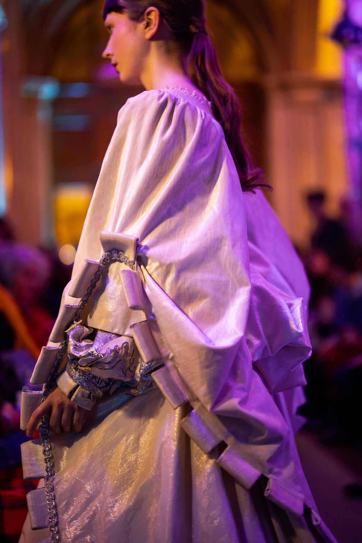 Die Models eroberten den außergewöhnlichen Laufsteg begleitet von Live-Electronics des Musikers und Produzenten Max Liebich sowie musikalischen Interventionen des Bühnenorchesters der Wiener Staatsoper. Nach der Fashionshow wandelten sich die Prunkräume der Oper in einen Club. Fashion meets Opera zeigte auch im dritten Jahr der Zusammenarbeit eindrucksvoll, wie junge Mode aus der KunstModeDesign Herbststrasse in Dialog mit einem traditionsreichen Kulturort treten kann.
