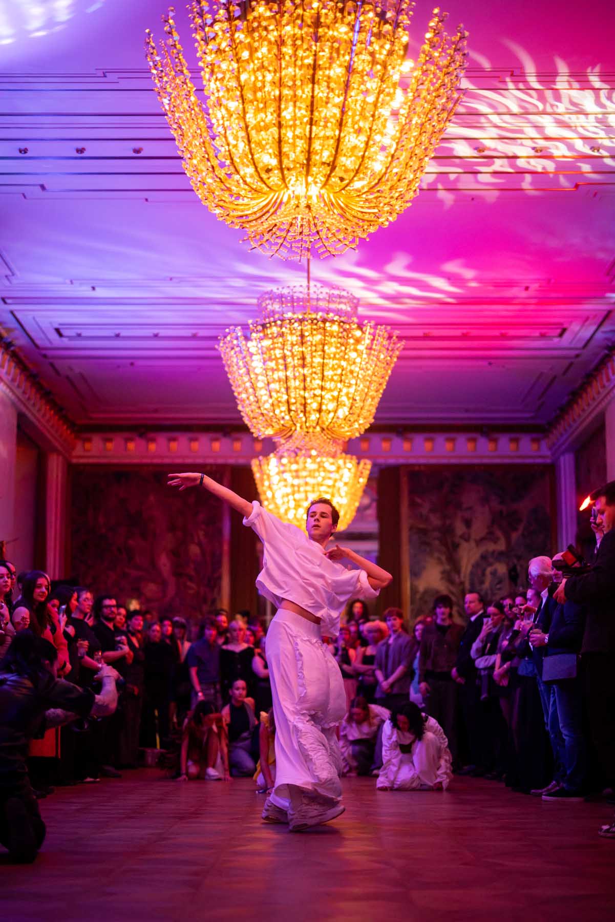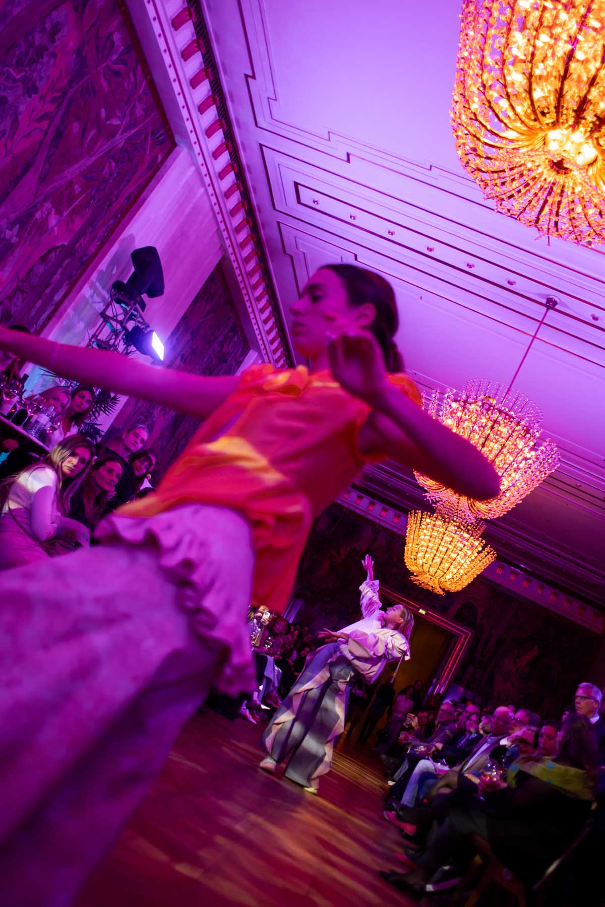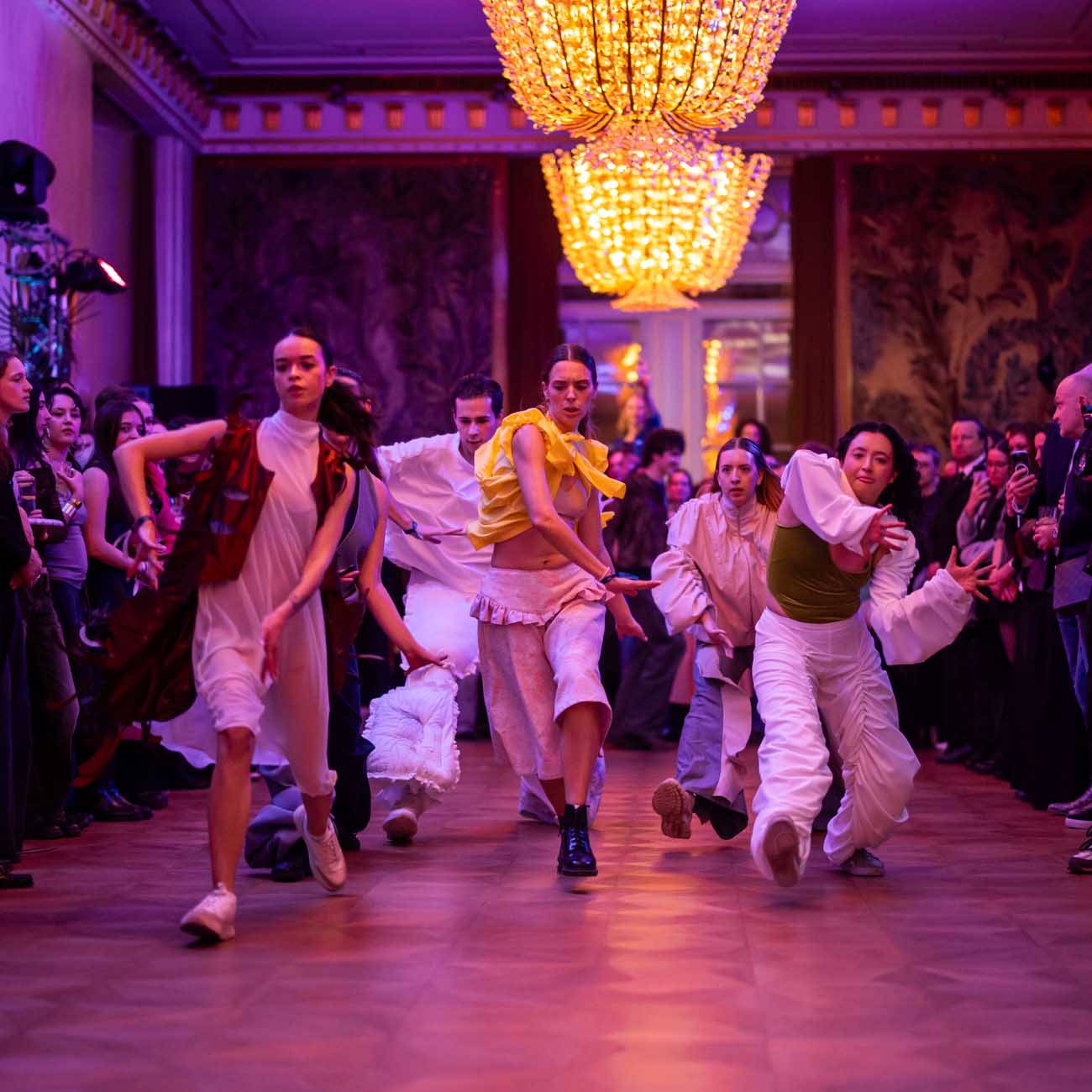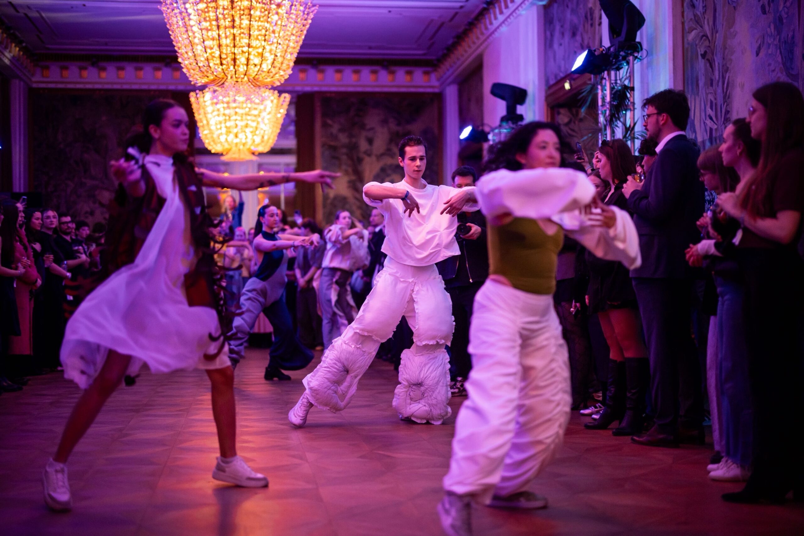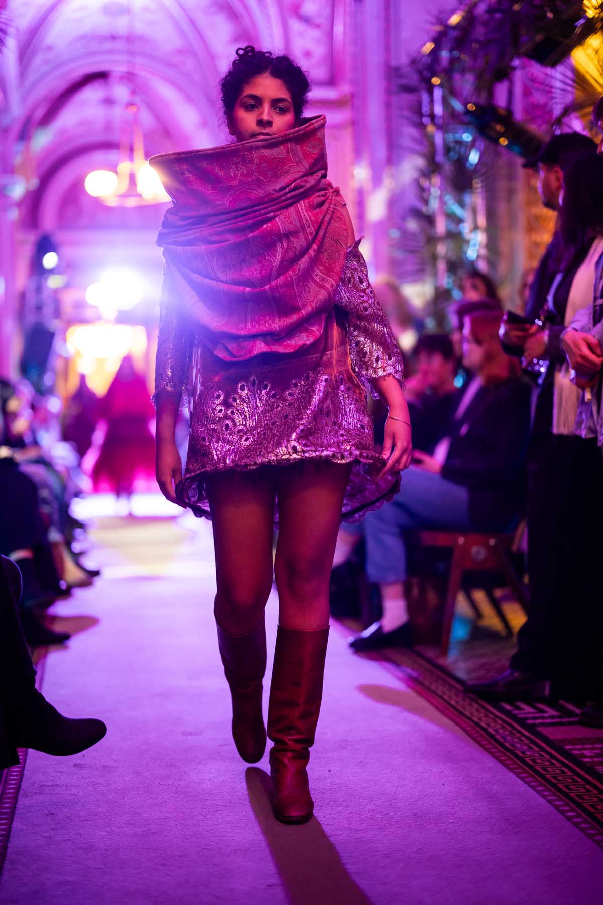 Die Models eroberten den außergewöhnlichen Laufsteg begleitet von Live-Electronics des Musikers und Produzenten Max Liebich sowie musikalischen Interventionen des Bühnenorchesters der Wiener Staatsoper. Nach der Fashionshow wandelten sich die Prunkräume der Oper in einen Club. Fashion meets Opera zeigte auch im dritten Jahr der Zusammenarbeit eindrucksvoll, wie junge Mode aus der KunstModeDesign Herbststrasse in Dialog mit einem traditionsreichen Kulturort treten kann.