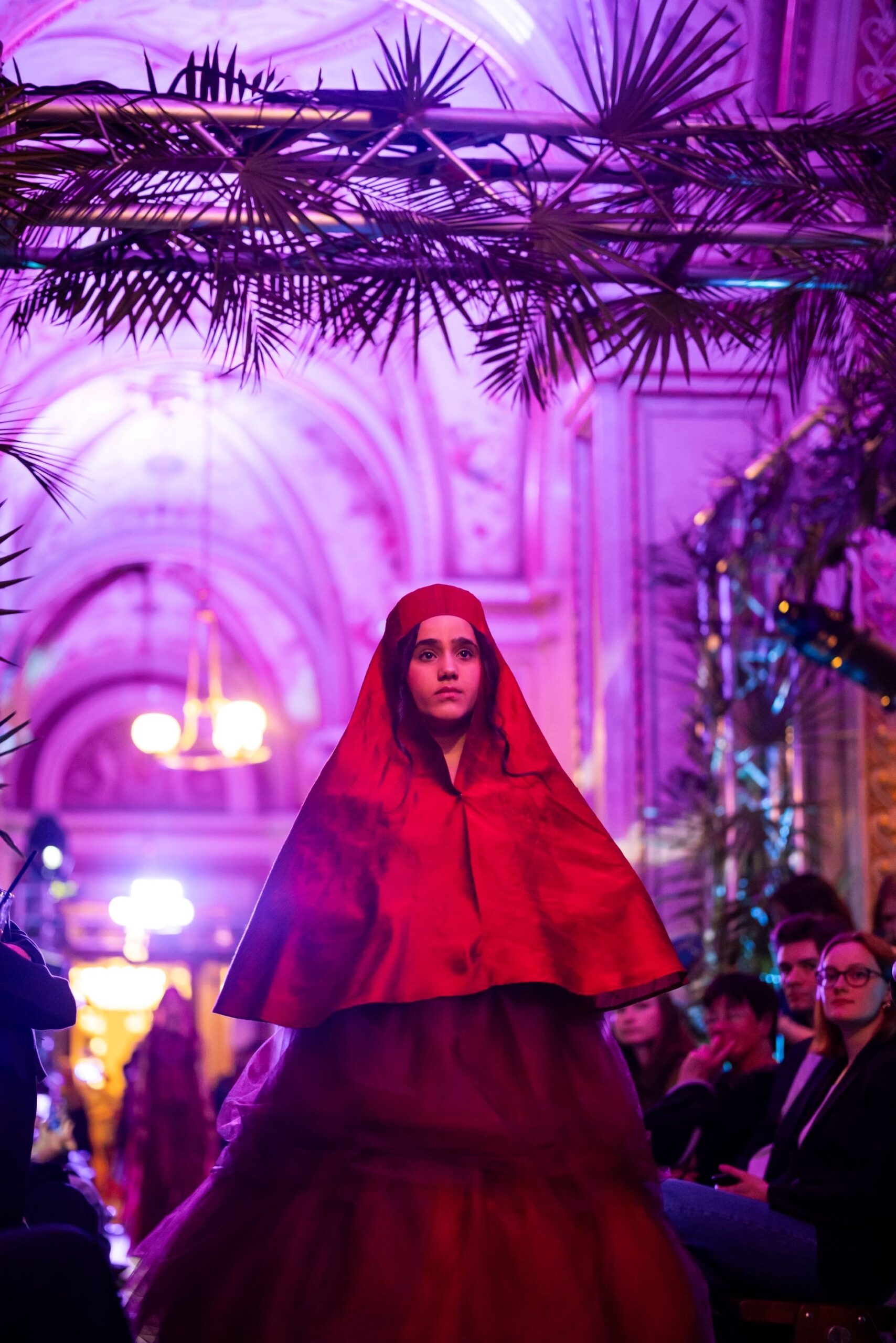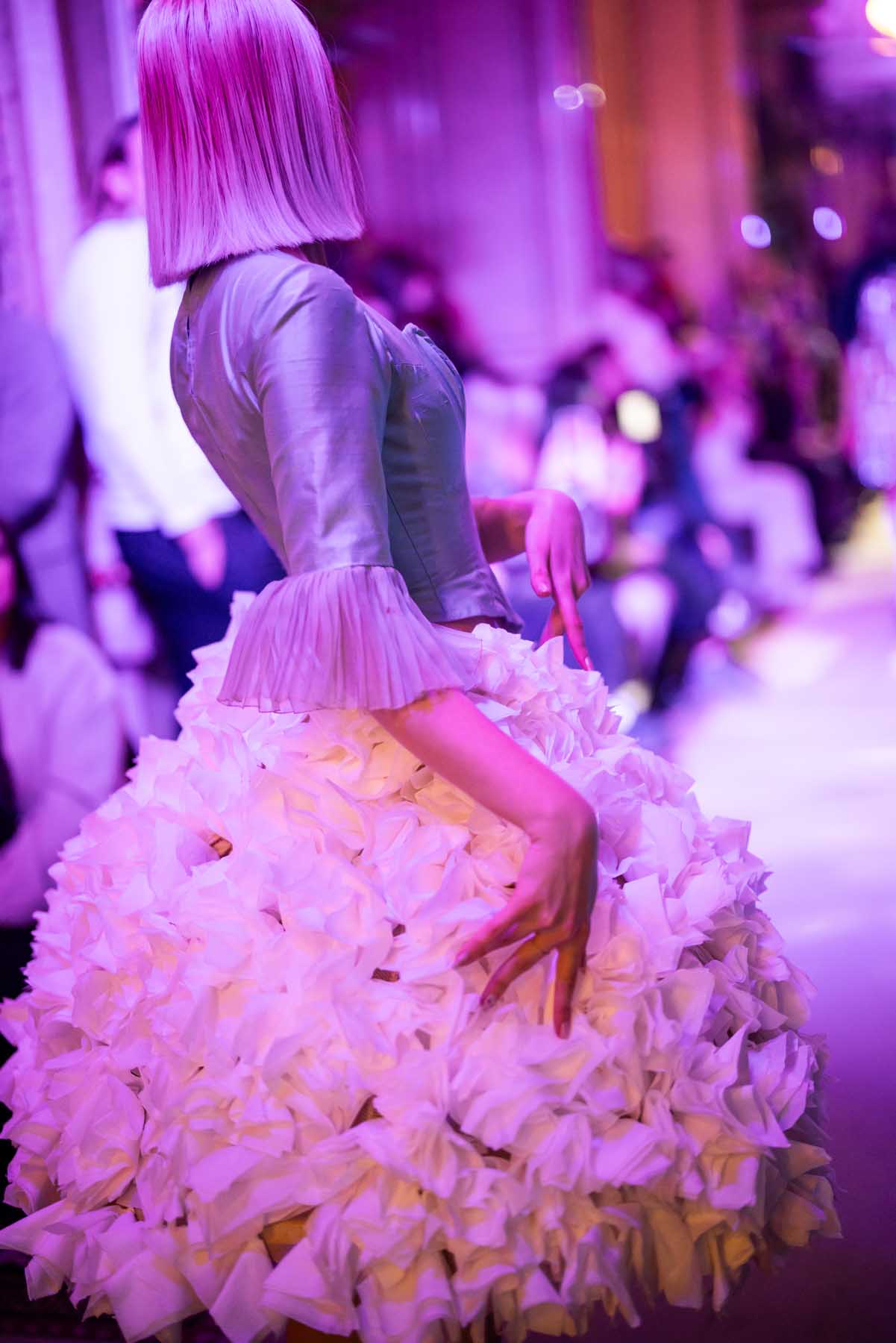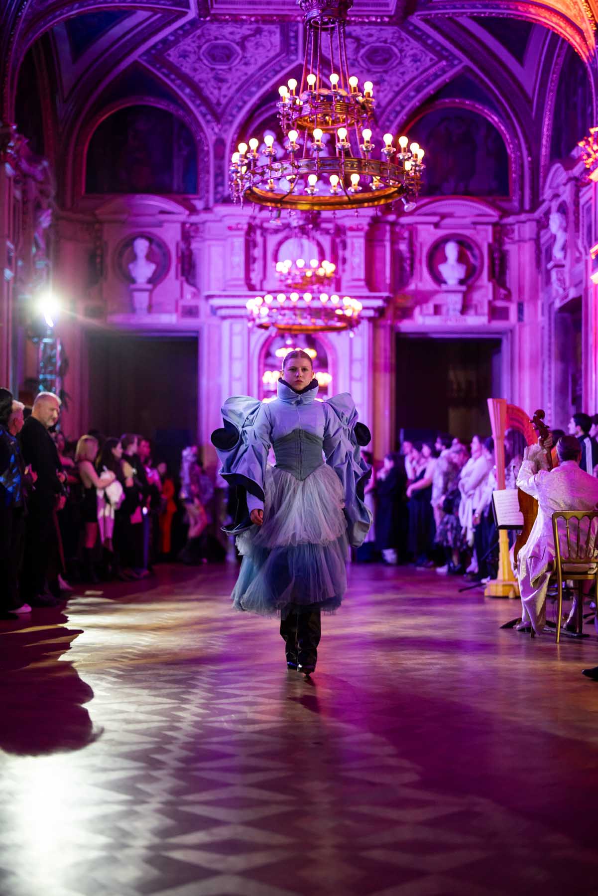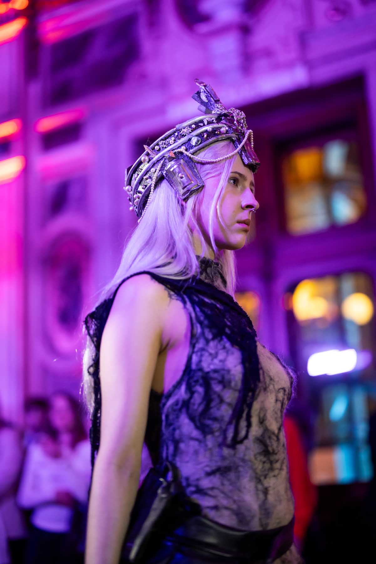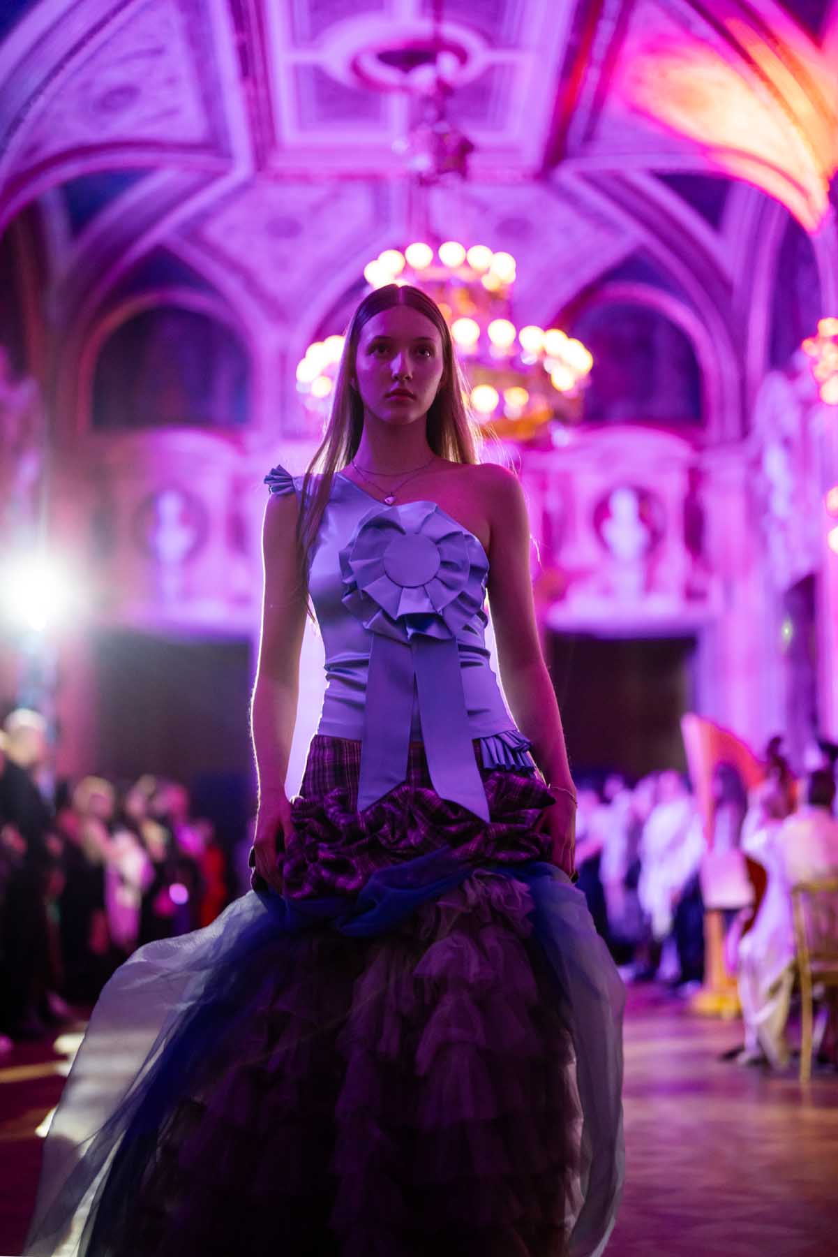 Auf der Feststiege und in den Prunkräumen der Wiener Staatsoper präsentierten 84 junge Designer:innen der KunstModeDesign Herbststrasse ihre eigenen Kollektionen. Die Entwürfe entstanden aus der Auseinandersetzung mit Themen, Musik und Figuren aus Georges Bizets Oper Les Pêcheurs de perles.