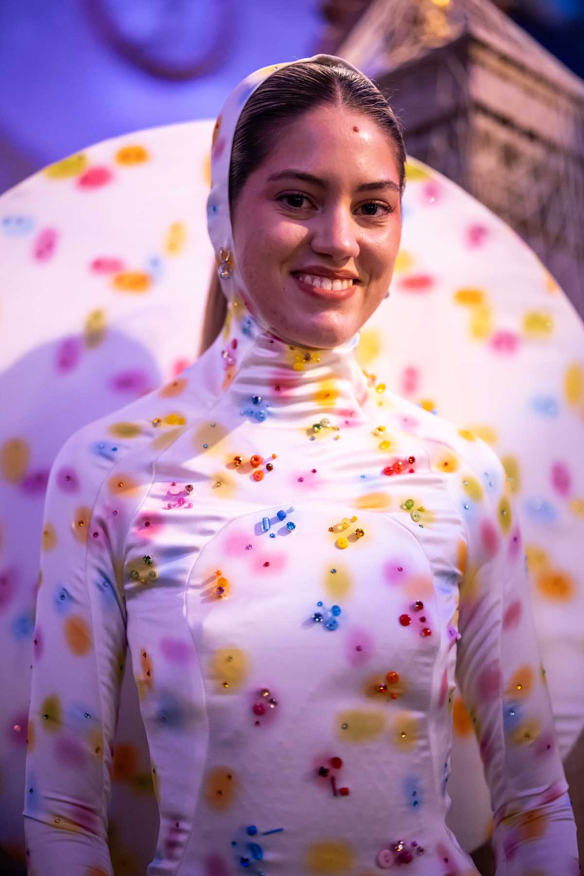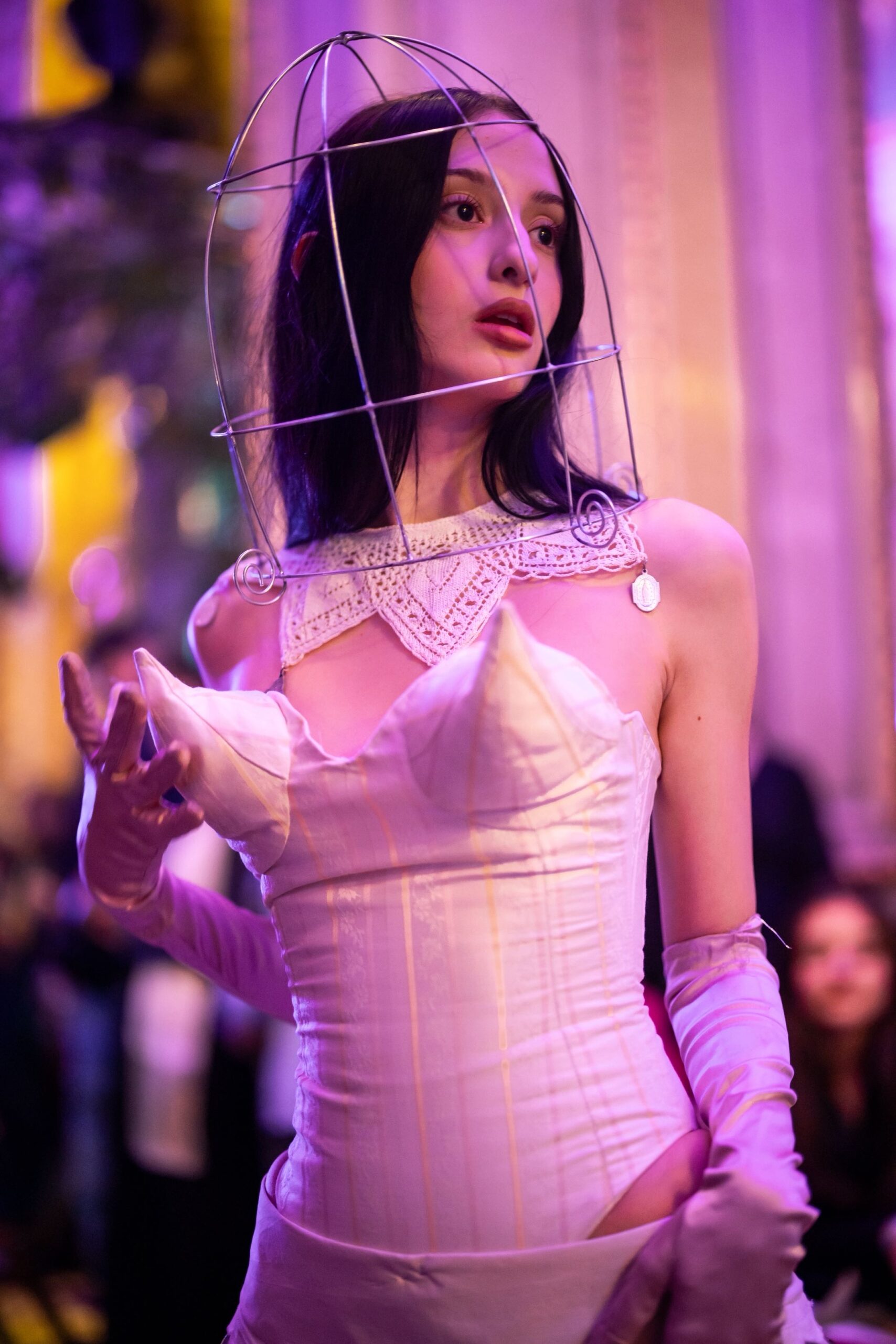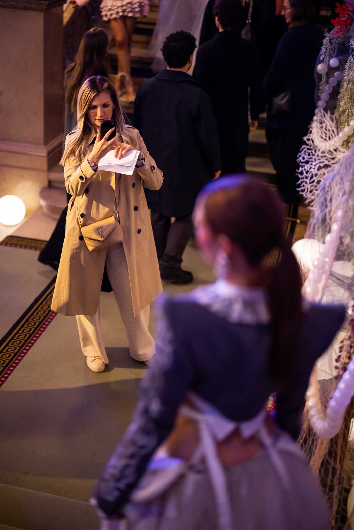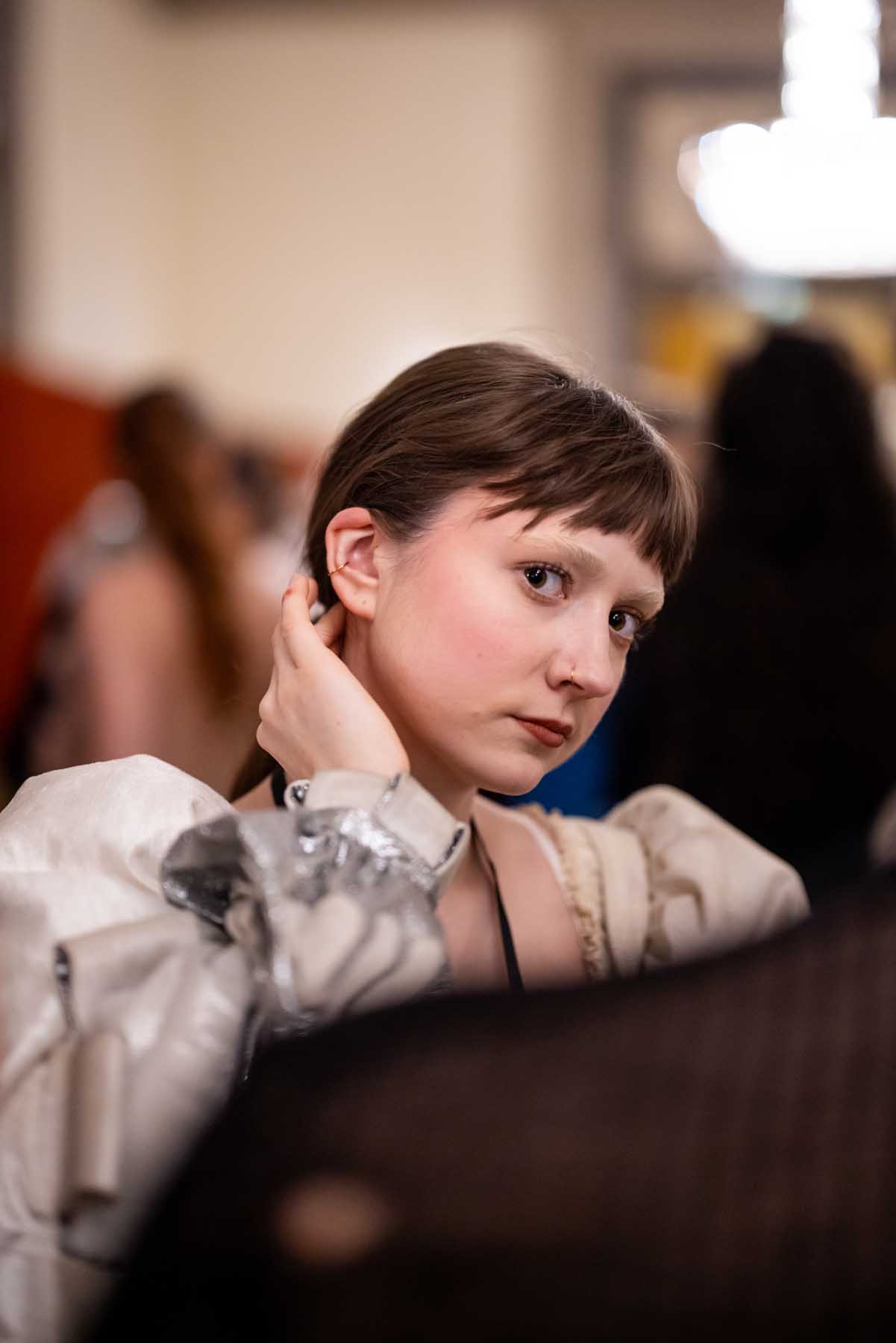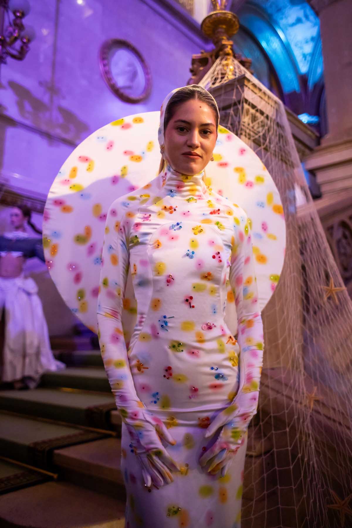 Auf der Feststiege und in den Prunkräumen der Wiener Staatsoper präsentierten 84 junge Designer:innen der KunstModeDesign Herbststrasse ihre eigenen Kollektionen. Die Entwürfe entstanden aus der Auseinandersetzung mit Themen, Musik und Figuren aus Georges Bizets Oper Les Pêcheurs de perles.