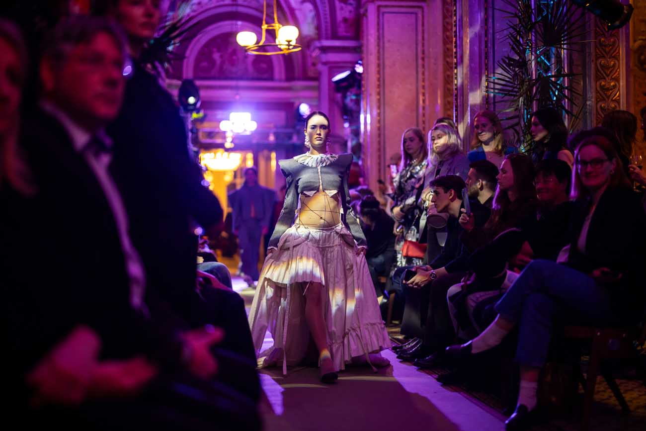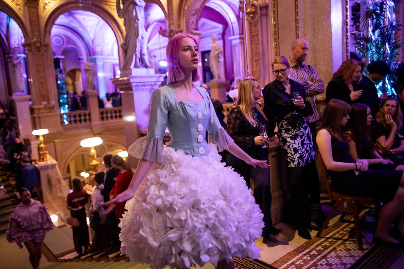 Fashion meets Opera brachte Nachwuchsdesigner:innen der KunstModeDesign Herbststrasse auf eine der traditionsreichsten Bühnen der Stadt. Die Veranstaltung verband Fashionshow, Musik und Clubkultur und verwandelte die Staatsoper für eine Nacht in einen Ort zeitgenössischer Mode.