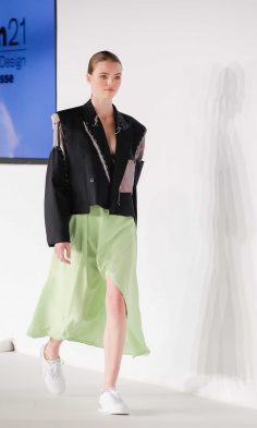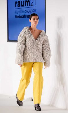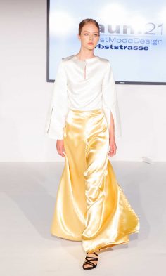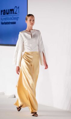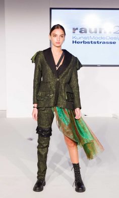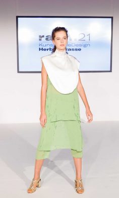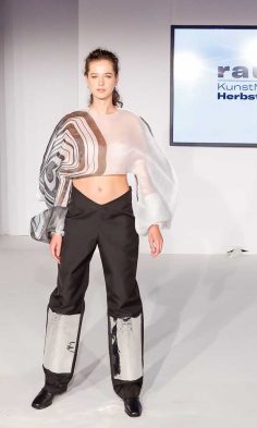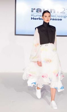 Angelehnt an Architektur, historische Stimmungsbilder sowie gesellschaftskritische Statements, liesen die unterschiedlichsten Zugänge der Diplomand*innen den Blick auf neue Aspekte in der Mode richten.