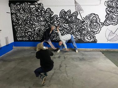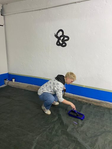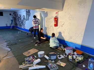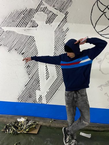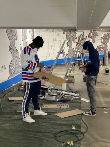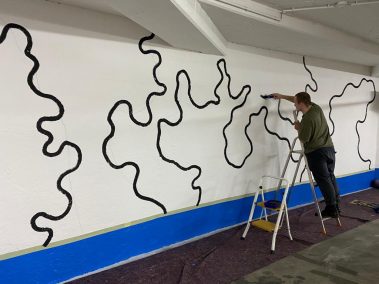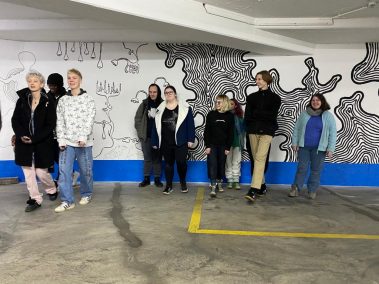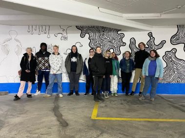 Viele Ideen, wenig Platz. Wie löst man das? 12 Jugendliche und ein Lehrer. Eine Wand die 28 Meter lang und 3 Meter hoch ist.