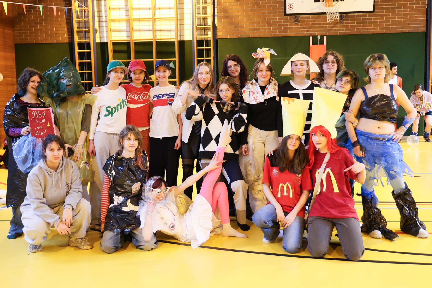 Ein besonderes Highlight waren die mitreißenden Dodgeballturniere, bei denen Schüler:innen und Lehrer:innen in fantasievollen Kostümen gegeneinander antraten. Mit viel Einsatz, Fairness und Teamgeist lieferten sich die Teams spannende Matches. Die Turnhalle wurde zur Arena – angefeuert von begeisterten Mitschüler:innen, die ihre Favoriten lautstark unterstützten. Neben sportlichem Ehrgeiz stand vor allem der Spaß im Vordergrund. Bei den Kreativwettbewerben stand die Kreativität im Mittelpunkt: Sowohl beim Gruppenkostümwettbewerb als auch beim Einzelkostümwettbewerb wurde deutlich, wie viel Kreativität, handwerkliches Geschick und Liebe zum Detail in den Verkleidungen steckte. Von aufwendig gestalteten Themenkonzepten bis hin zu originellen Einzelideen – die Bandbreite war beeindruckend. Eine Jury hatte die schwierige Aufgabe, die Gewinner:innen zu küren. Was diesen Faschingsdienstag besonders machte, war das starke Miteinander. Zahlreiche Schüler:innen und Lehrkräfte wirkten bei der Organisation und Durchführung mit – sei es bei der Planung der Spiele, der Moderation, der Juryarbeit oder der Dekoration.