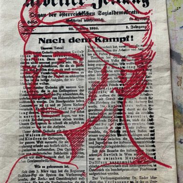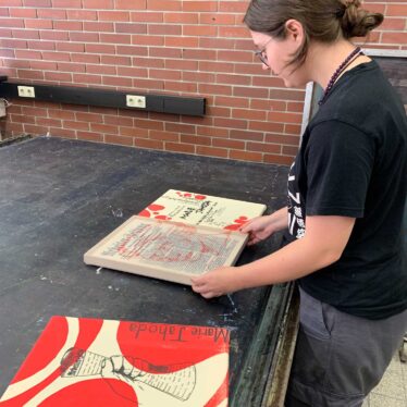 Textildruck an der KMD – 20 Schülerinnen und Schüler der KunstModeDesign Herbststrasse und drei Studentinnen der Akademie der bildenden Künste der Fachrichtung „Gestaltung im Kontext“ beschäftigten sich im Fach Textildruck mit der Sozialpsychologin Marie Jahoda, der Autorin der weltbekannten Sozialstudie „Die Arbeitslosen von Marienthal“.