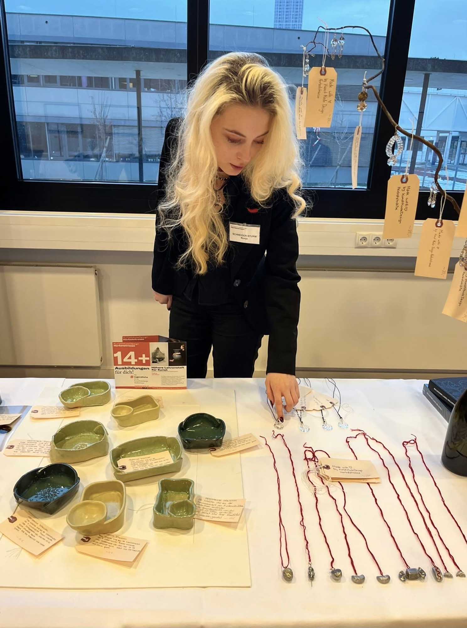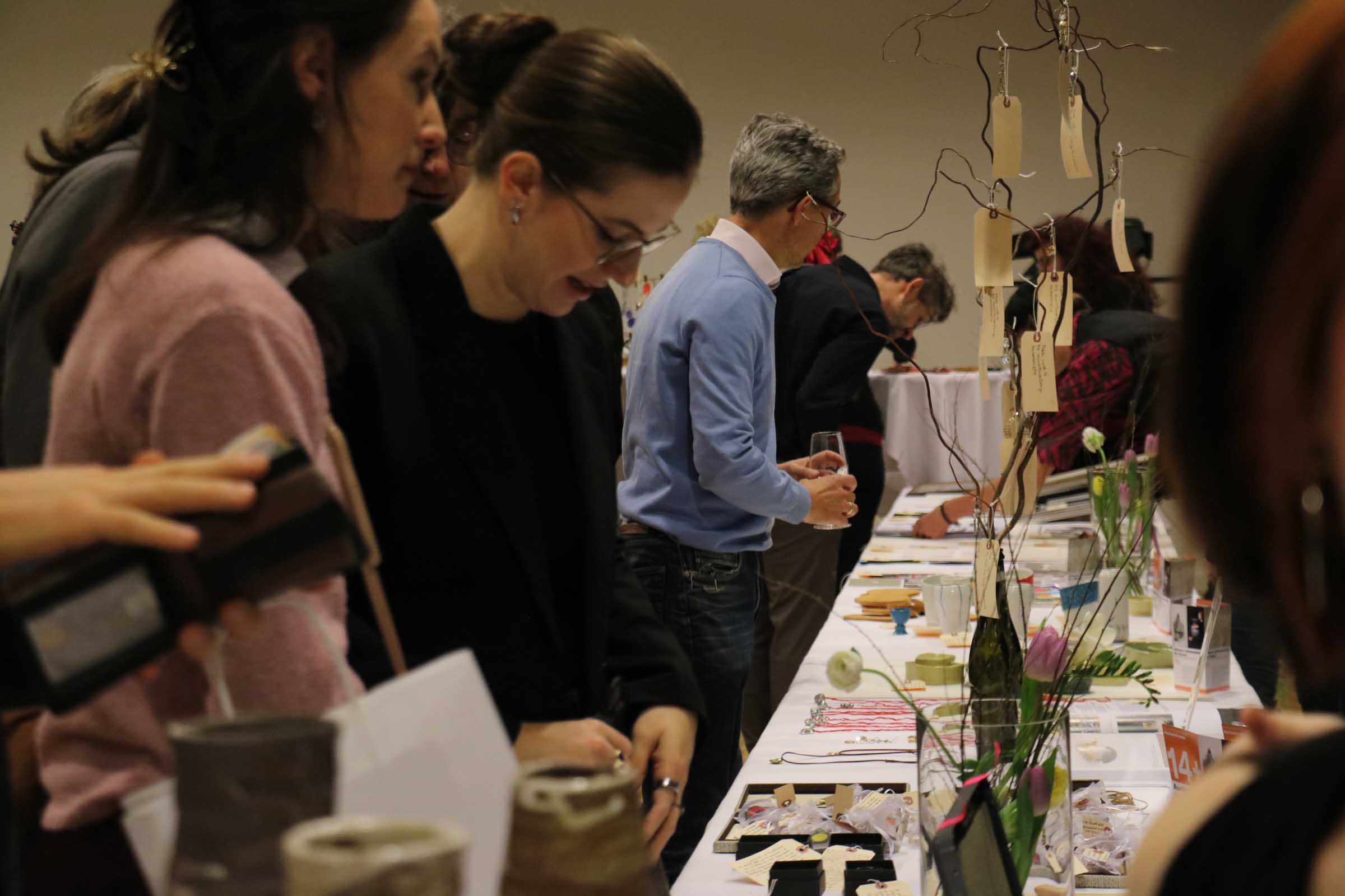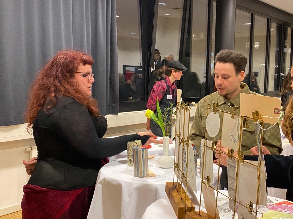 Die Gäste wurden am frühen Abend mit einem stilvollen Genuss-Cocktail und musikalischer Begleitung empfangen und nutzten die Gelegenheit, den professionell gestalteten Kunstmarkt zu erkunden. Dort konnten Schmuckstücke, Keramiken, bedruckte Stofftaschen sowie Karten und Bilder bewundert und erworben werden.