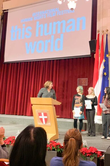 Die jungen Künstlerinnen des 3. Jahrgangs Paula Paier, Maxima Panhauser & Johanna Rothleitner haben mit ihrem sehr berührenden Video „How can I stop feeling lonley“ beim internationalen Menschenrechtsfilm-Festival „This human World“ den dritten Preis der Jugendschiene „The Future Is Ours To See“ gewonnen!