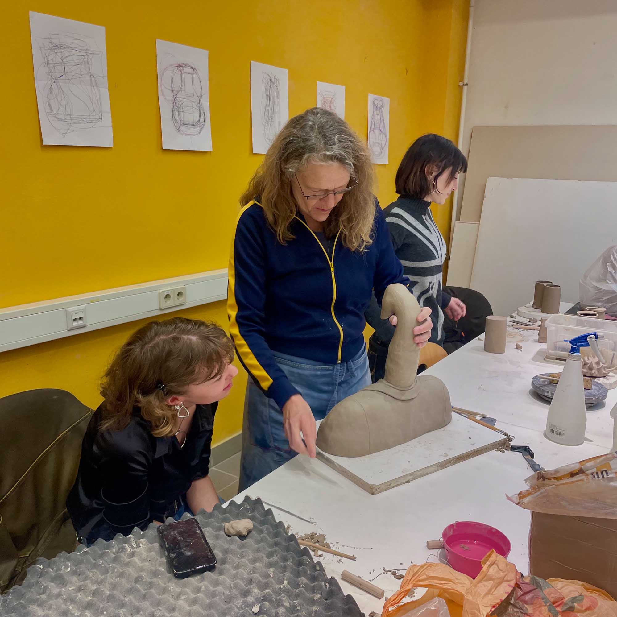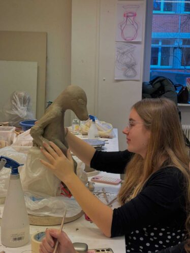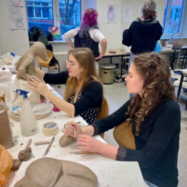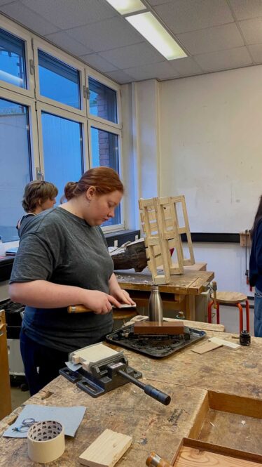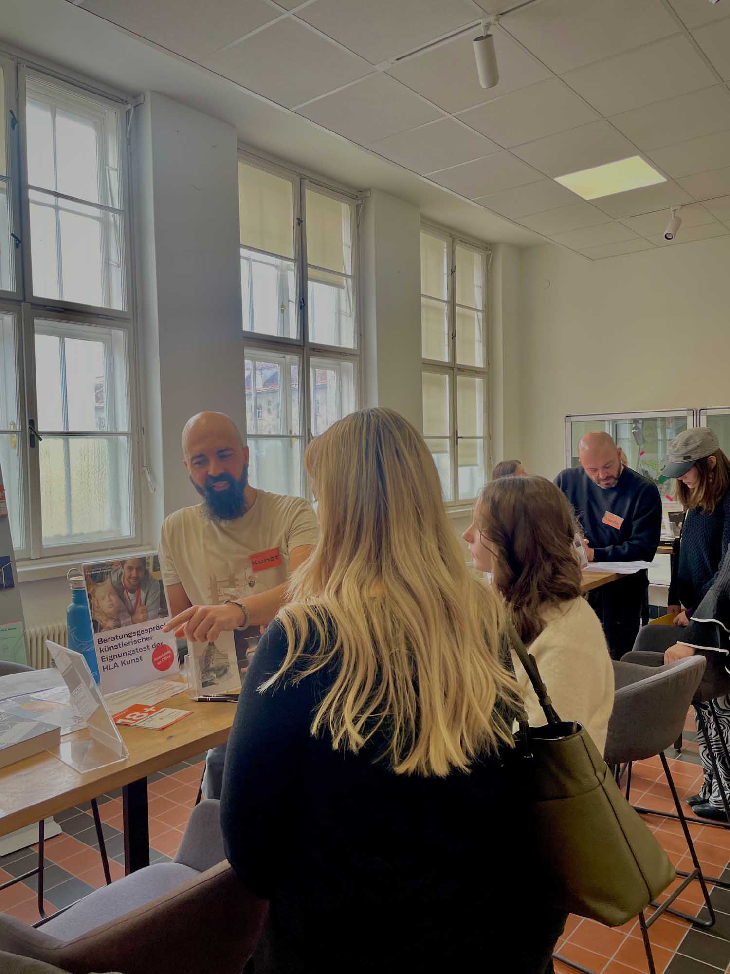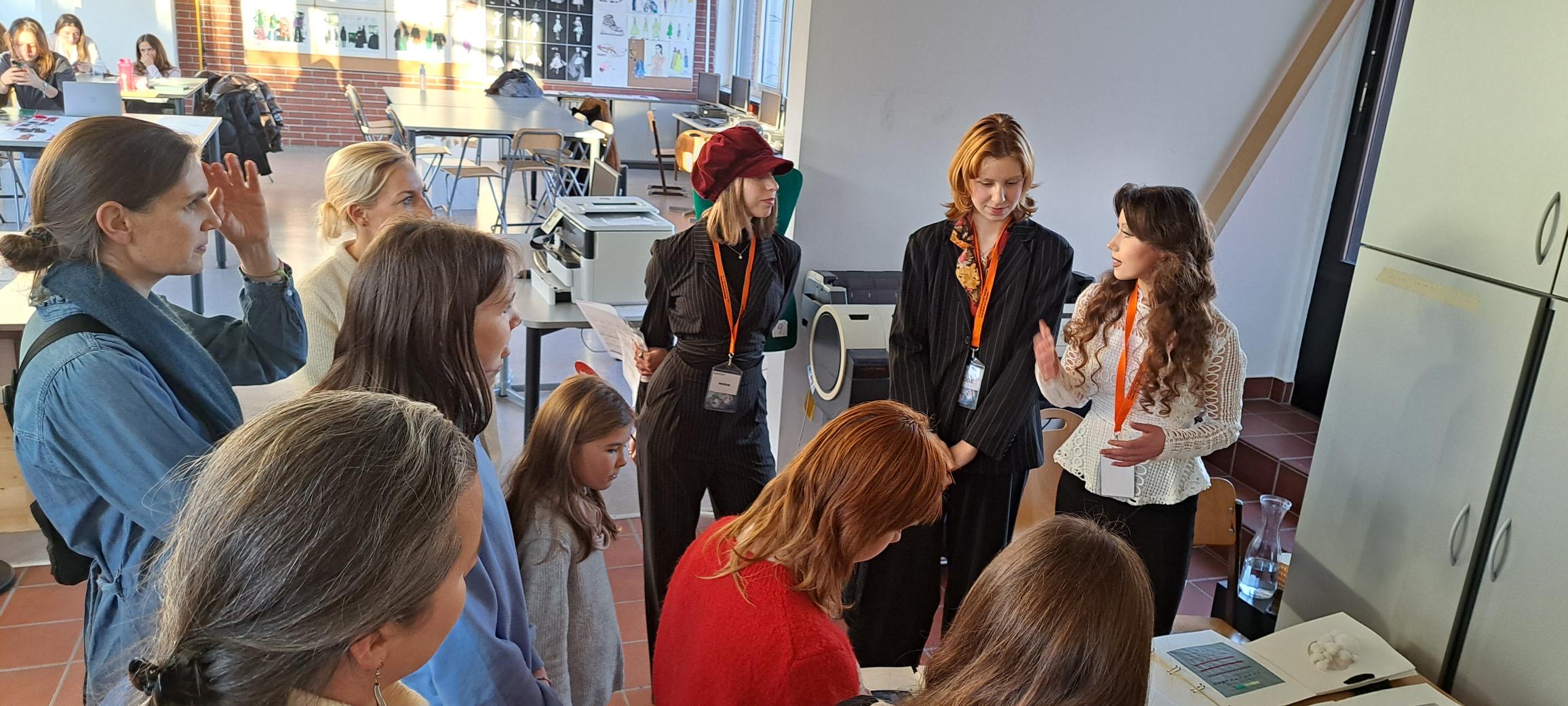 Es war beeindruckend zu sehen, mit welcher Motivation Schüler:innen und Studierende der Modeschule und Kunstschule – unterstützt von ihren Lehrenden – „ihre“ Schule den mehr als 1.300 Besucher:innen vorgestellt haben. Als KMD-Guides führten die Kunst- und Modeschüler:innen die Gäste durch zahlreiche Werkstätten, Ateliers sowie Unterrichts- und Ausstellungsräume. In acht parallel laufenden Führungen konnten stündlich über 100 Besucher:innen Einblicke in unser Haus gewinnen.