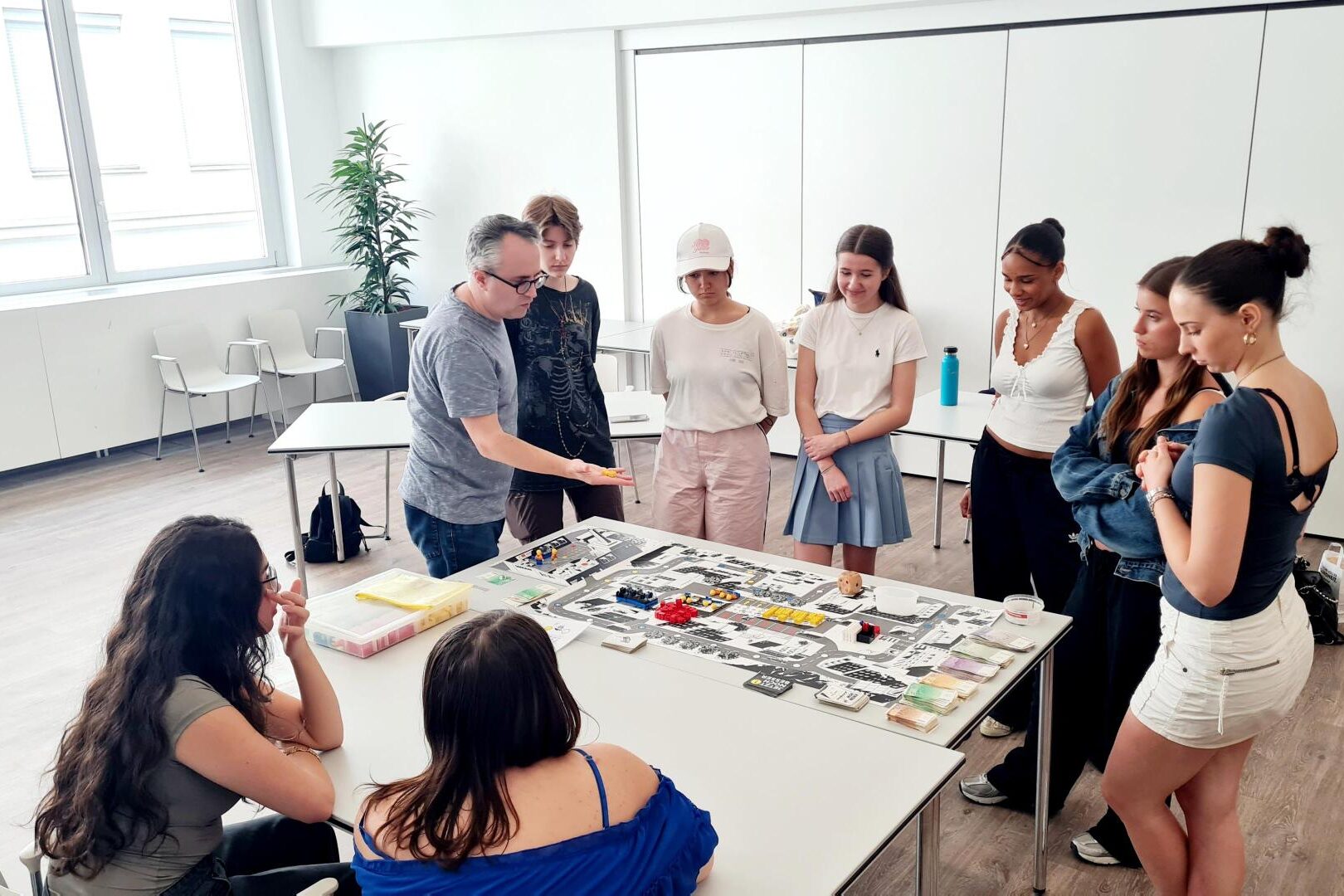Das Planspiel „Wirtschaft“ der Arbeiterkammer zeigte Modeschüler:innen des 3. Jahrgangs B der KMD Herbststrasse die wirtschaftlichen Zusammenhänge und unternehmerisches Denken mit einer spannenden Methodik auf. Schülerinnen und Schüler schlüpften in die Rolle von Unternehmer:innen und Staat. Entscheidungen zu Produktion, Vertrieb, Marketing und Finanzen bzw. Infrastruktur, Steuern, Förderungen etc. wurden getroffen – alles nicht ohne Auswirkung auf das eigene virtuelle Unternehmen und den Markt.
