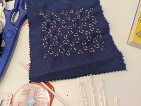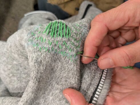 In der Ausstellung Masters of Repair finden sich auch upgecycelte und geflickte Outfits der Künstler:innen und KMD Herbststrassen-Lehrer:innen Christina Dörfler und Manuel Wandl. Expert:innen Workshops werden im Bereich der Weberei und Sashiko-Sticktechnik von Gundula Hickisch, Christina Dörfler (KMD) und Mirjam Hilbrich (KMD) angeboten.