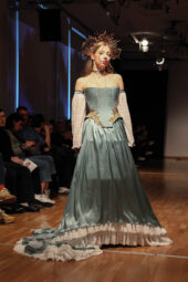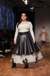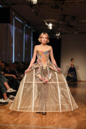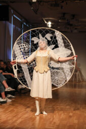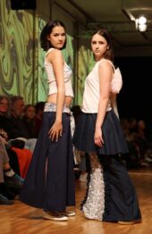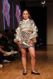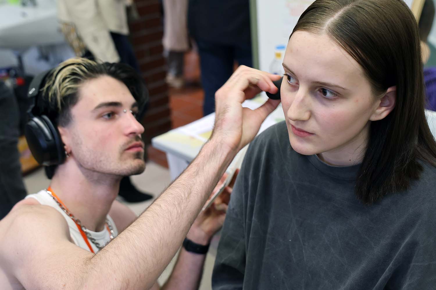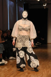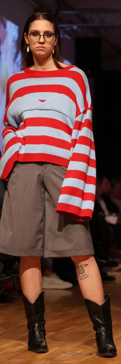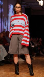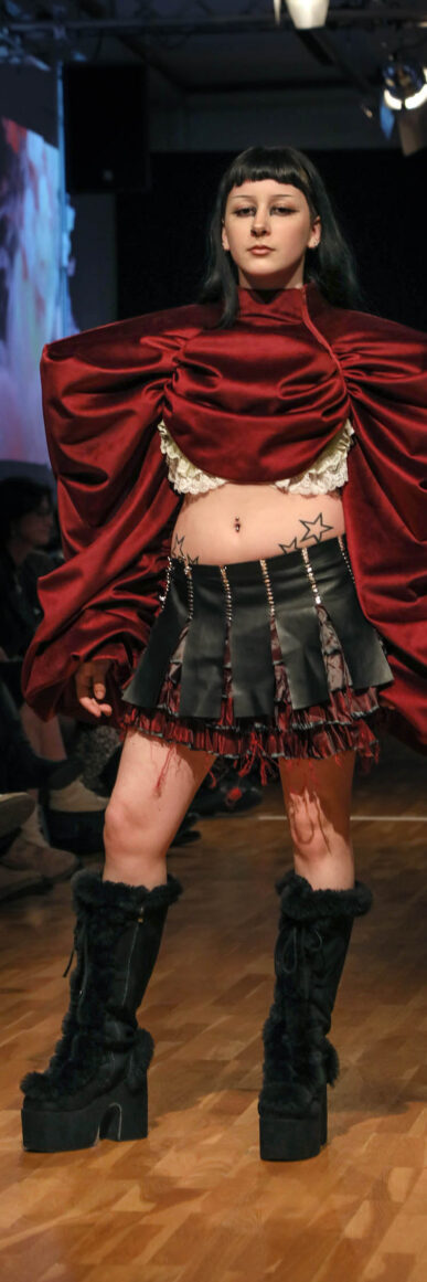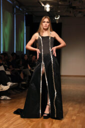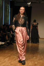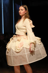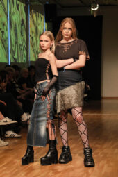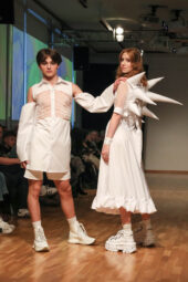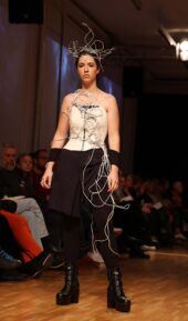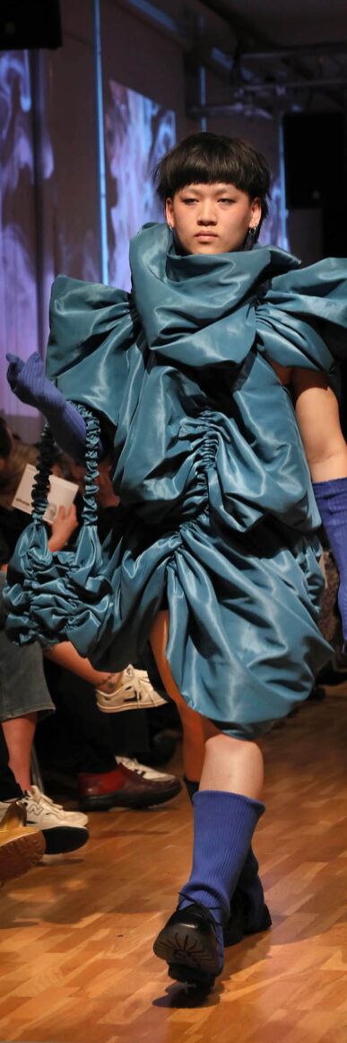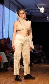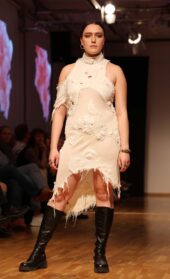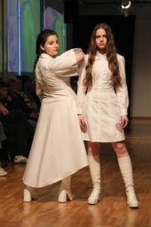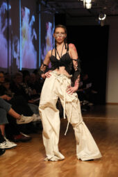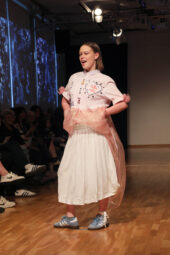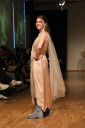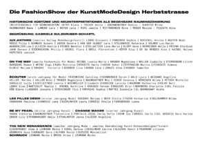 Rund 600 Gäste wurden am 18. + 19. April zu vier Fashionshows (nach vielen Jahren wieder) vor Ort in der KunstModeDesign Herbststrasse empfangen. Im Festsaal präsentierten die Schüler:innen und Studierenden der Wiener Modeschule ihre Modeentwürfe. Herausragende Abschlusskollektionen ergänzten die Show ebenso wie einzigartiger Schmuck des Abendkollegs Kunst für SchmuckDesign. Die zahlreich erschienenen Gäste wurden mit außergewöhnlichen Silhouetten und Gestaltungen zeitgenössischer Designs konfrontiert. Jedes Kleidungsstück erzählte eine einzigartige Geschichte von Tradition, Ideenreichtum und Handwerkskunst – viele der Kollektionen entsprachen auch nachhaltig-innovativen Konzepten.