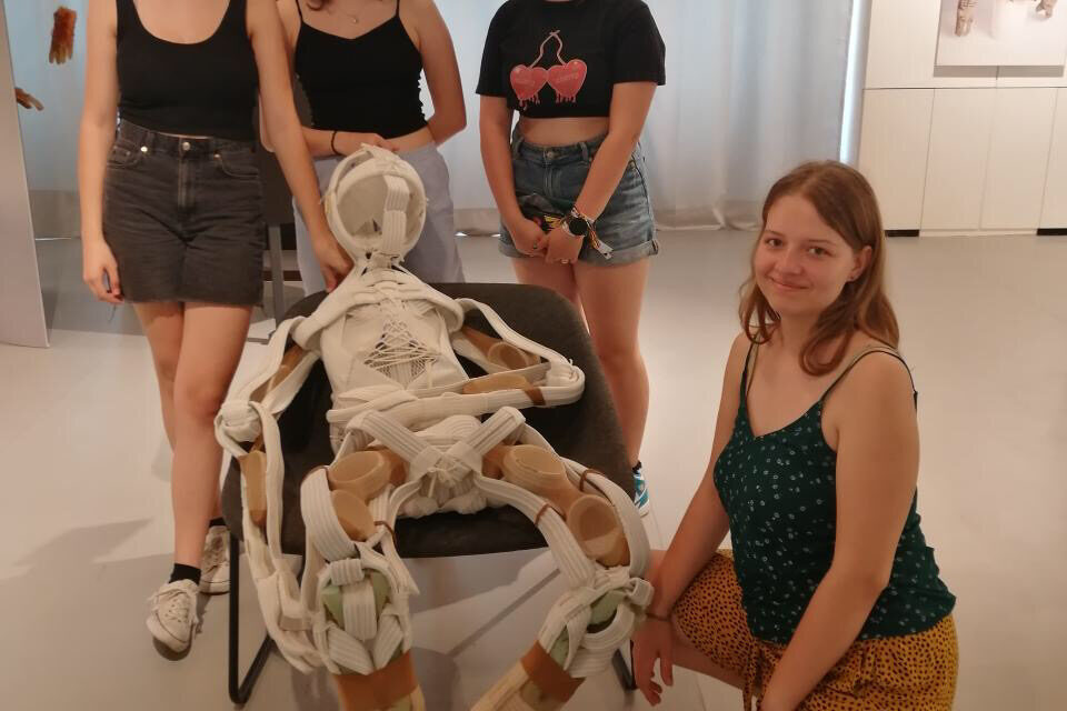 Schüler:innen des 3. Jahrgangs der Kunstschule besuchten im Rahmen der Werkstätte „textile Oberflächengestaltung“ die Ausstellung Threads of Life: Textiles between Medicine and Art, kuratiert von Barbara Graf, in der AIL-Postsparkasse der Universität für angewandte Kunst.