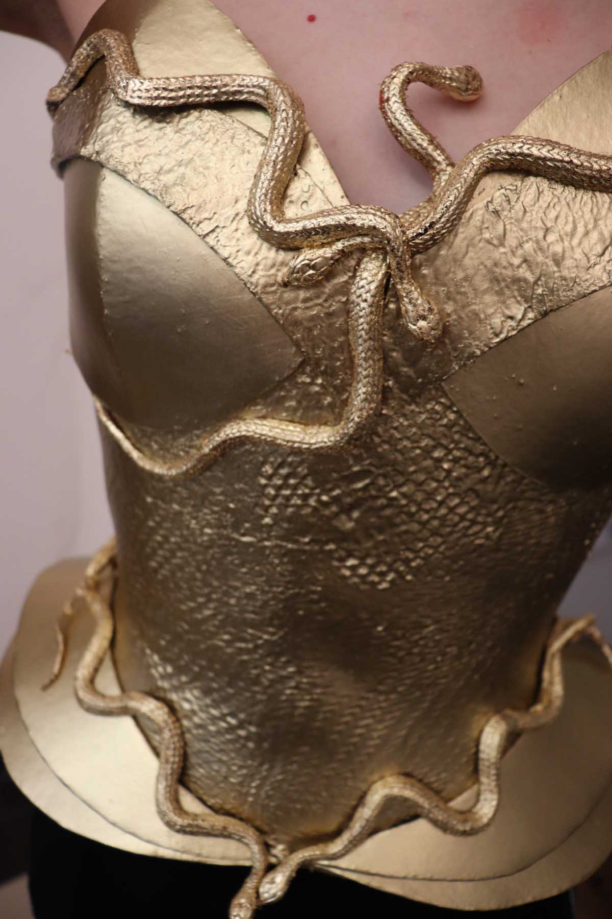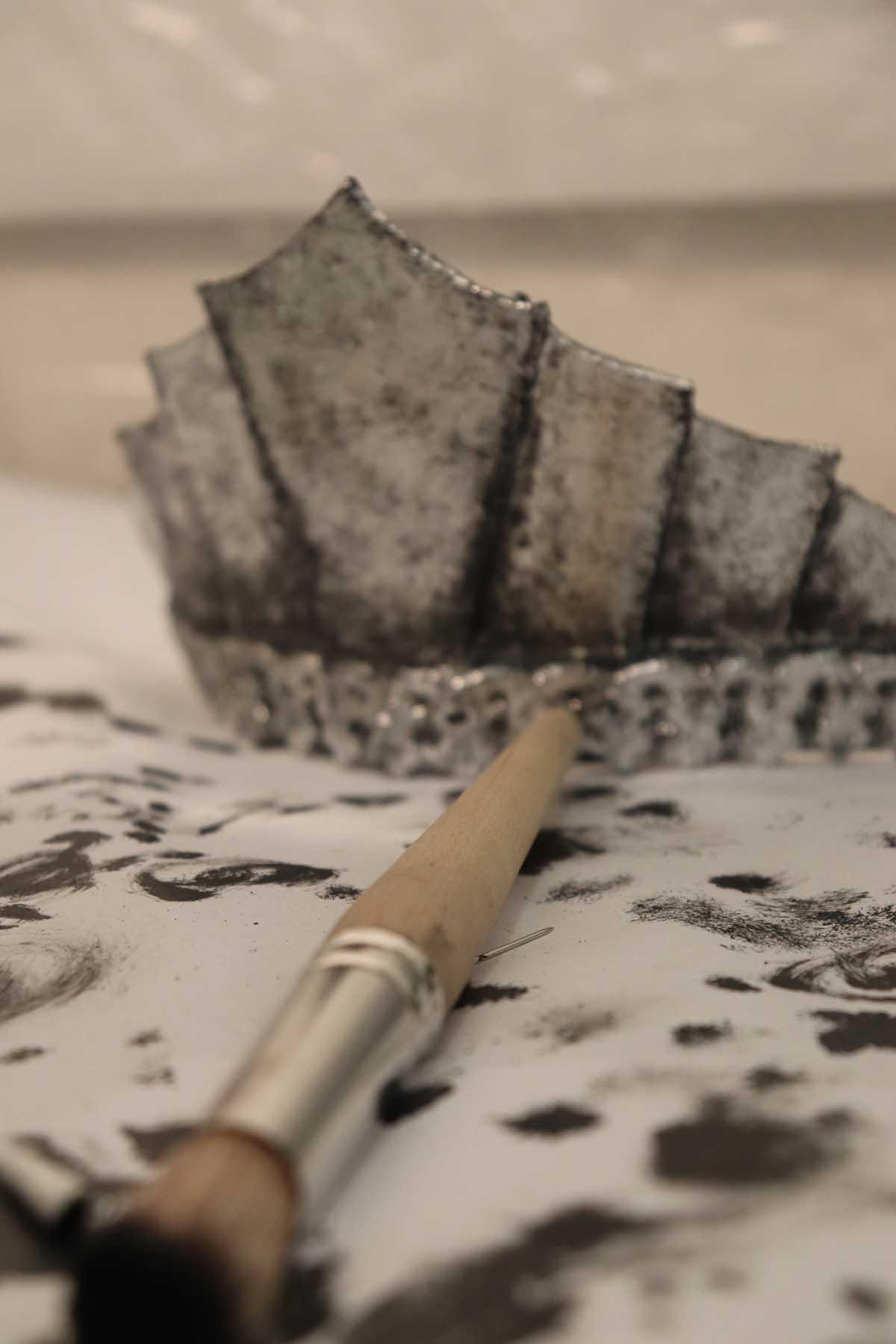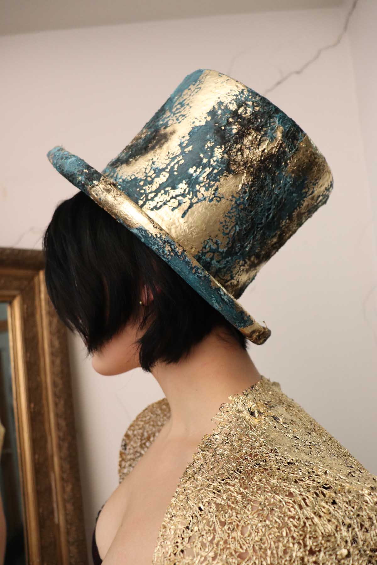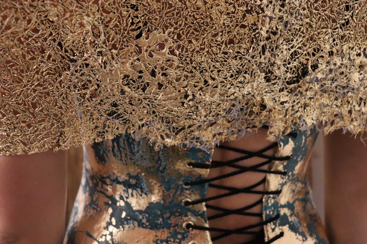 Die Schüler/innen der Meisterklasse für Bühnenkostüm an der KunstModeDesign Herbststrasse haben an einem viertägigen Kostümmalerei-Workshop, unter der Leitung der renommierten Kostümmalerin Frau Kaname Kiyono, teilgenommen. Der Schwerpunkt des Workshops wurde im Bereich Vergolden und Metallisieren mithilfe von Schlagmetall, Pigmentfarben und Metallfolien gesetzt, wobei einige Teilnehmerinnen aber auch andere Methoden der Oberflächenbearbeitung, wie die Reißlacktechnik, anwendeten, um die gewünschten Effekte zu erzielen. Den vergoldeten Werkstücken wurde unter Anleitung von Frau Kiyono u.a. durch Schattierung oder Patinierung der letzte Schliff verliehen. Das großzügige Sponsoring der hochwertigsten Arbeitsmaterialien durch die Firmen